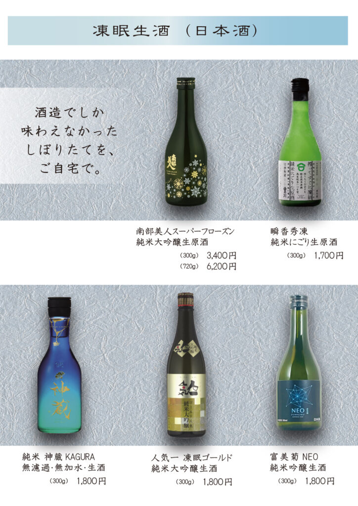 蔵出し直後の生酒をすぐに凍結することにより、今まで酒造でしか